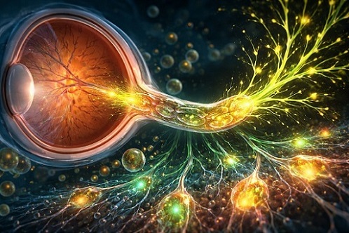 Retinal ganglion cells are the nerve cells that carry visual signals from the eye to the brain. Their long fibers, called axons, form the optic nerve. When these axons are damaged, as in glaucoma or optic nerve injury, regrowth is extremely limited. Lipids, or fats, are essential for building new cell membranes and keeping nerve cells flexible. Mitochondria, the energy centers of cells, also rely heavily on lipid balance to function properly.