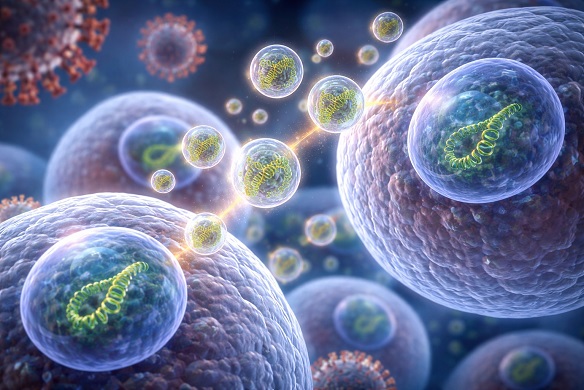Extracellular vesicles are tiny membrane-bound particles naturally released by cells to communicate with one another. Under healthy conditions, they carry proteins and genetic instructions that help maintain normal cellular functions. During SARS-CoV-2 infection, however, these vesicles can be exploited to transport viral RNA between cells without triggering immediate immune responses.